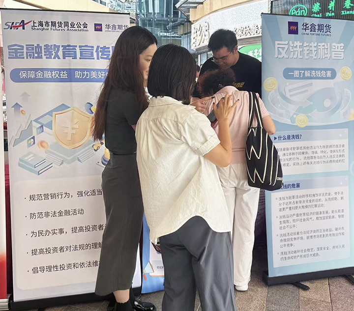 华鑫期货首席风险官王薇高度重视并全程参与,指导团队立足期货行业特点进行专业宣讲。现场通过咨询答疑、发放资料等形式,向公众介绍期货市场基本风险、个人信息防护、防范非法期货及电信诈骗等实用知识,助力市民树立理性投资观念,提升风险识别和自我保护能力。