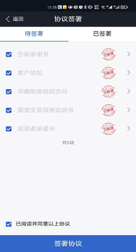 1.业务内容:为已在我司开立期货账户的客户办理协议签署申请