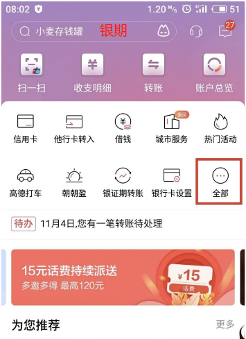 第一步:首页搜索栏输入“银期”——进入功能栏目下的“银期转账”,或者点击“理财—全部—银证期转账”;