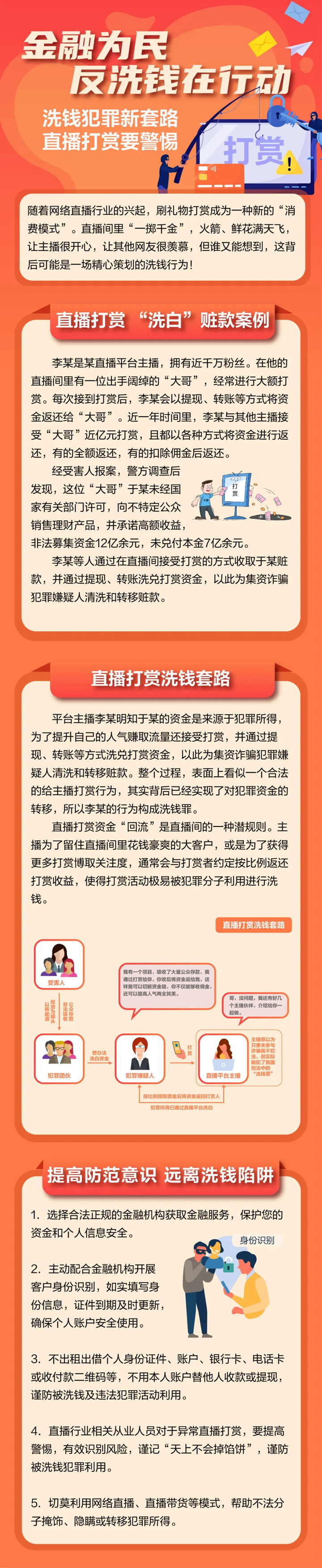 反洗钱事关国家经济金融安全和社会稳定,事关国家治理体系和治理能力现代化,同时也关系到老百姓的切身利益。让我们一起聊聊反洗钱那些事儿,提高咱老百姓对洗钱等违法犯罪活动的识别能力,增强金融安全意识,守护好自己的“钱袋子”。今天带大家了解直播行业背后可能存在的洗钱陷阱,帮助大家远离洗钱风险。