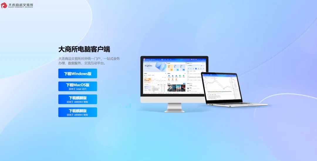 大商所对外门户包括网页端业务通办、大商所电脑客户端、大商所APP。
