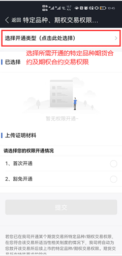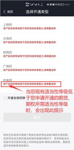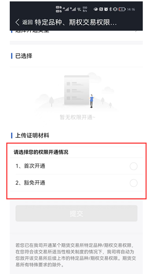 d.选择权限开通情况(根据实际情况选择,如有疑问可咨询客户经理或拨打公司客服热线400-186-8822)