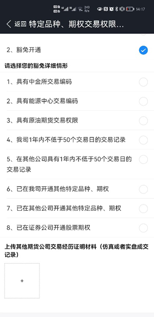 1.业务内容:为已在我司开立期货账户的个人客户办理增开特定品种、期权的交易权限申请