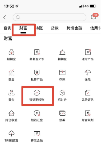 第一步:首页搜索栏输入“银期”——进入功能栏目下的“银期转账”,或者点击“理财—全部—银证期转账”;