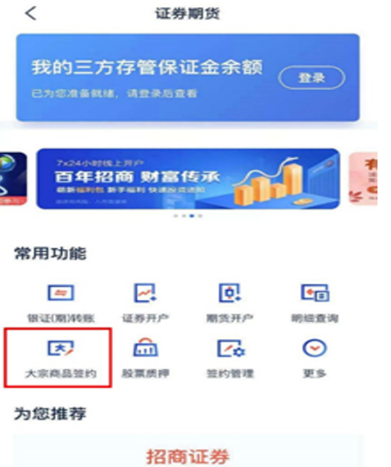 第二步:“证券期货”界面——“大宗签约管理”;